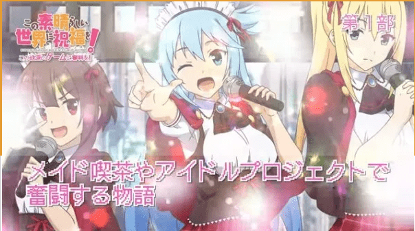Konosuba merupakan seri novel ringan yang ditulis oleh Natsume Akatsuki dengan ilustrasi oleh Kurone Mishima. Seri animenya yang diproduksi oleh Studio DEEN telah ditayangkan sebanyak dua musim. Seperti pada musim pertama, musim kedua anime Konosuba juga ditayangkan selama 10 episode.