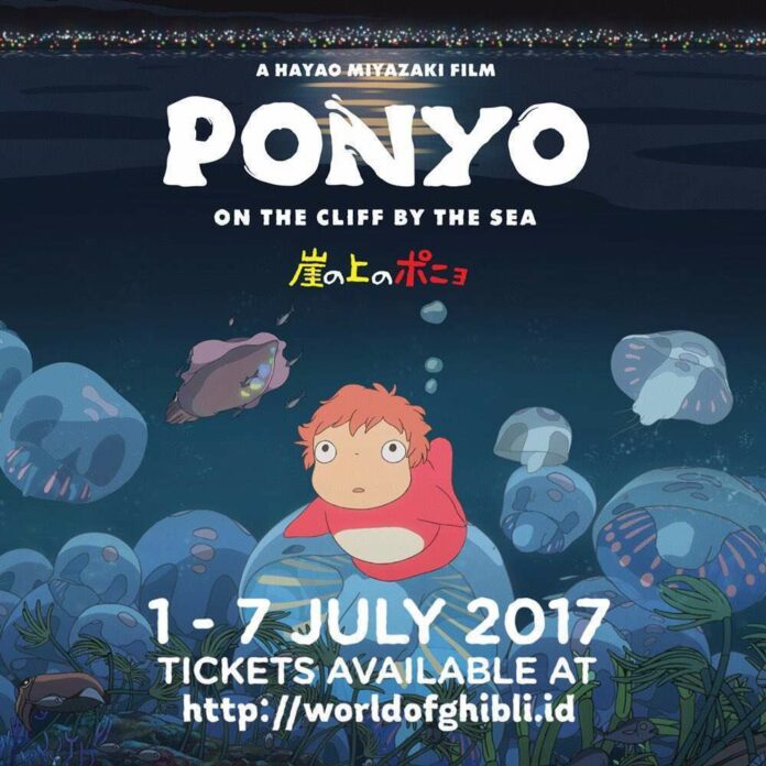 Film Ponyo on the Cliff by the Sea akan hadir di sejumlah jaringan bioskop Cinema 21 dan CGV Cinemas Indonesia pada tanggal 1-7 Juli 2017 dalam rangkaian acara The World of Ghibli Jakarta, Setelah sebelumnya pada bulan April dan Mei diputar film Spirited Away dan My Neighbour Totoro.