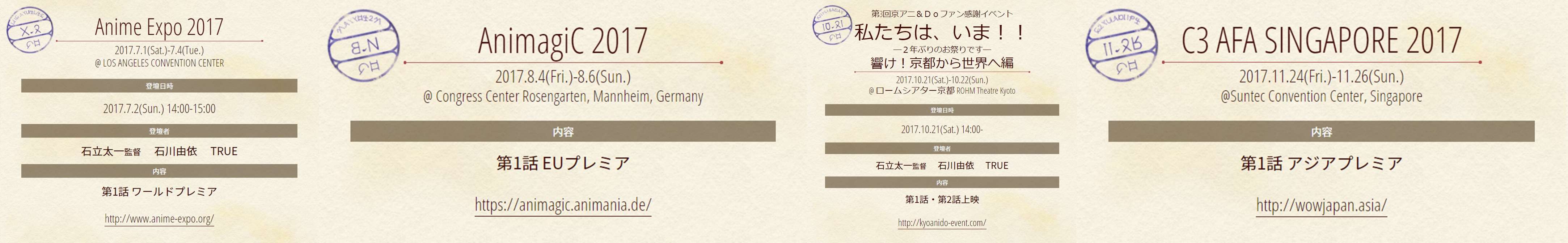 Menjelang penayangannya, seri anime ini juga menggelar acara penanyangan spesial yang akan digelar di beberapa event luar negeri, yaitu: