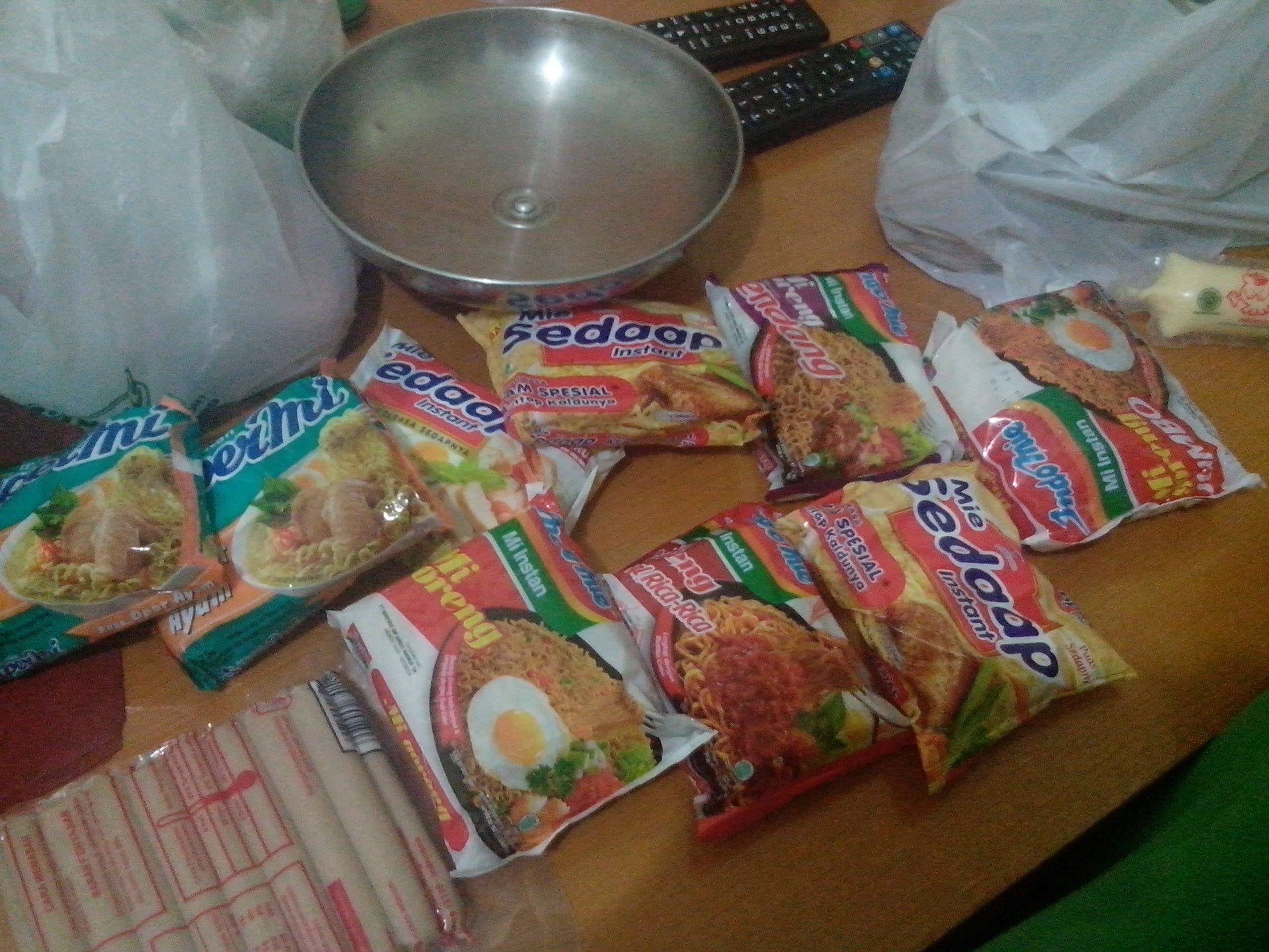 Semuanya telah mencapai mufakat saat hidangan utama mie instan. Pada hari H-nya, datanglah satu persatu anggota dengan membawa mie instan, minuman dan pelengkap andalan masing-masing. Ada yang membawa mie goreng Indomie, Mie goreng rica-rica, mie goreng rendang dan beberapa macam mie goreng lainnya. Tidak hanya mie goreng, adapun yang membawa mie rebus dari kubu Sedaap. Dari segi bahan pelengkap, ada yang membawa telur negeri, sayur sawi, BASIS (bakso berbentuk sosis) telur ayam kampung, lalapan krispi dan ada yang membawa tahu sutera alias tofu(yang nantinya secara magis masuk dari mulut keluar lewat hidung saat saya santap).