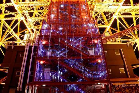 Pemandangan lainnya tersaji dalam 600 anak tangga di bagian luar. Dengan balutan lampu yang menyerupai cahaya bintang, suasana yang dihadirkan sangat cocok untuk menemani sejuknya malam di ibu kota Jepang.