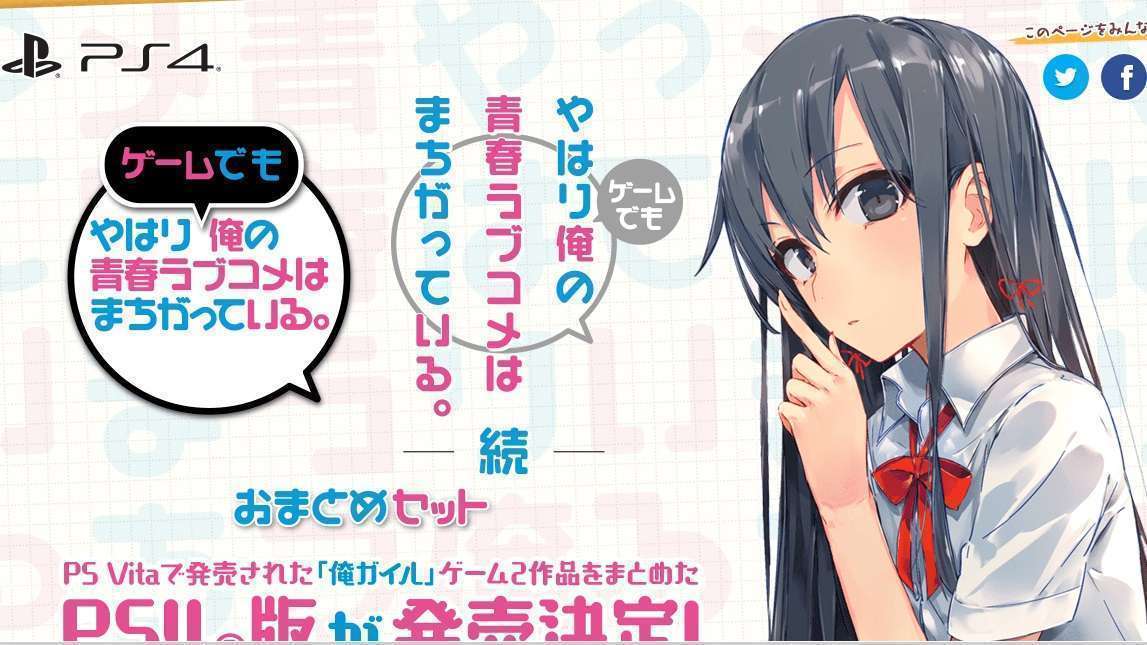 Seperti diberitakan sebelumnya, game Yahari Ore no Seishun Love Comedy wa Machigatteiru Zoku (Oregairu Zoku) telah dapat dimainkan di konsol PS Vita. Kini game tersebut akan dapat dimainkan di konsol PS4 dan akan dirilis sepaket dengan musim pertama game tersebut yang berjudul Yahari Ore no Seishun Love Comedy wa Machigatteiru (Oregairu).