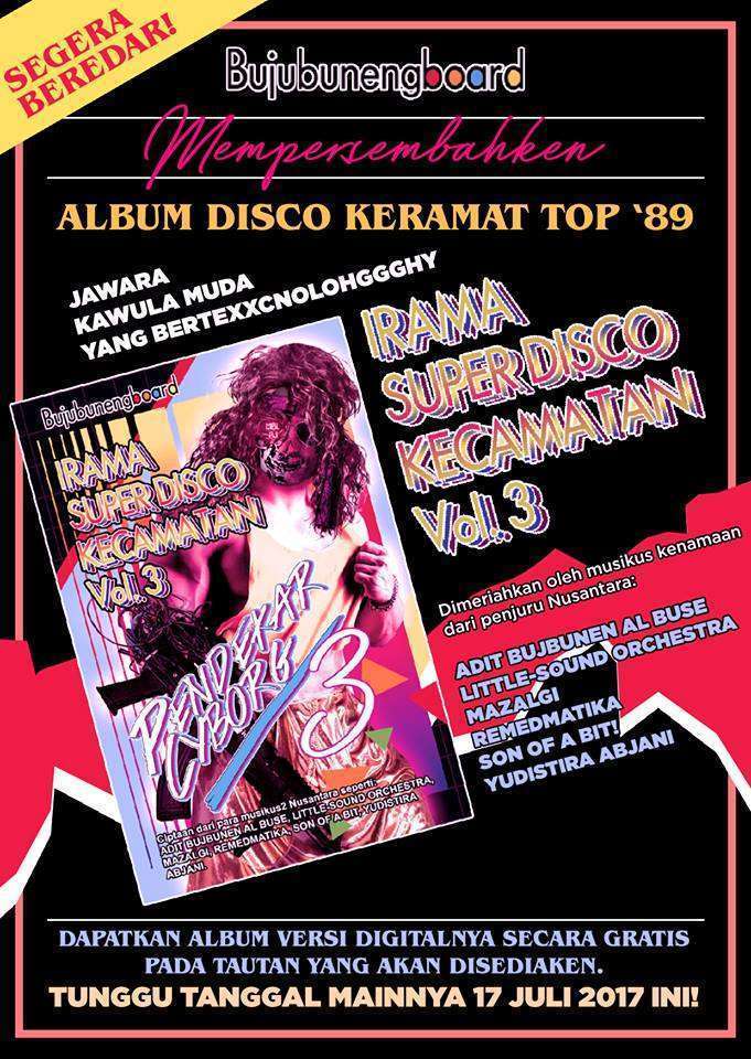 Kini menjelang perilisan digitalnya, visual untuk album musik IRAMA SUPER DISCO KECAMATAN Vol. 3 tersebut telah dipublikasikan. Album musik persembahan Bujubunengboard ini akan dimeriahkan sejumlah musisi seperti Little-Sound Orchestra, Mazalgi, Remedmatika, Son of A Bit!, Yudistira Abjani, dan Adit Bujbunen Al Buse sendiri selaku otak dari Pendekar Cyborg.