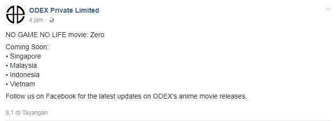 Sebagaimana telah diberitakan sebelumnya, seri anime No Game No Life telah dipastikan akan hadir kembali sebagai film yang rencananya akan diputar pada tanggal 15 Juli 2017 di bioskop -bioskop Jepang.