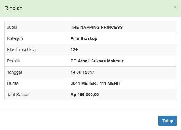 Film ini sendiri juga telah lulus sensor dari Lembaga Sensor Film, di mana film ini didaftarkan atas nama PT. Athali Sukses Makmur.