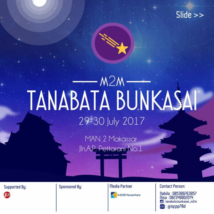 Sudah pada dengar tidak tentang Festival Jepang yang bakalan diadakan di MAN 2 Kota Makassar? Setelah sukses dengan tema “Tenjin Matsuri” tahun lalu, festival Jepang yang kalian tunggu-tunggu akan hadir untuk kedua kalinya dengan tema “Tana Bata Bunkasai”!