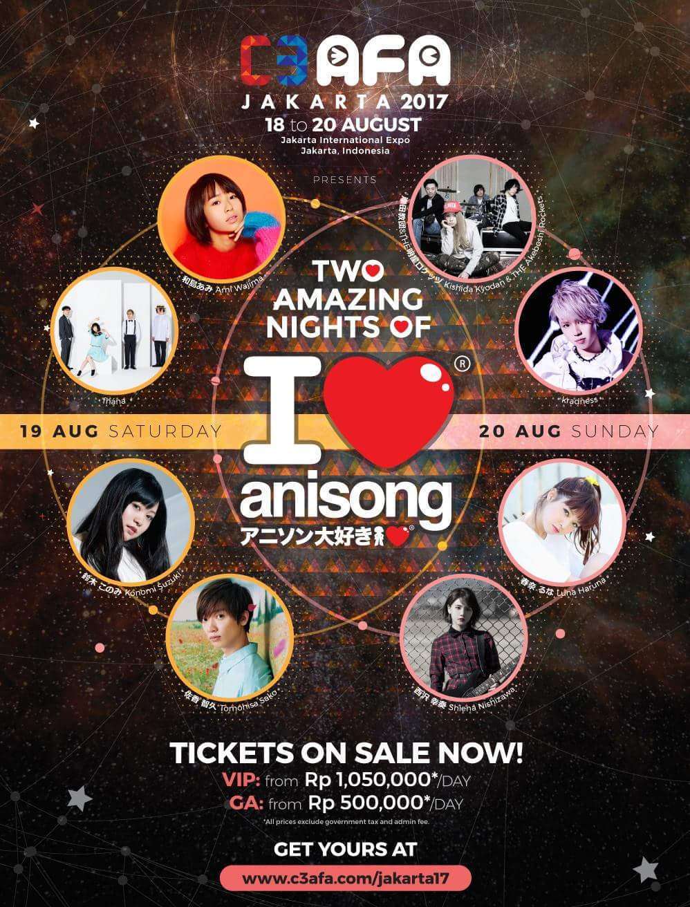 C3 Anime Festival Asia (C3AFA) Jakarta 2017, salah satu event pop culture Jepang terbesar di Asia Tenggara, telah mengumumkan gelombang pertama konten yang akan dibawakan di event yang akan hadir di Jakarta, tanggal 18-20 Agustus 2017 di JIEXPO.