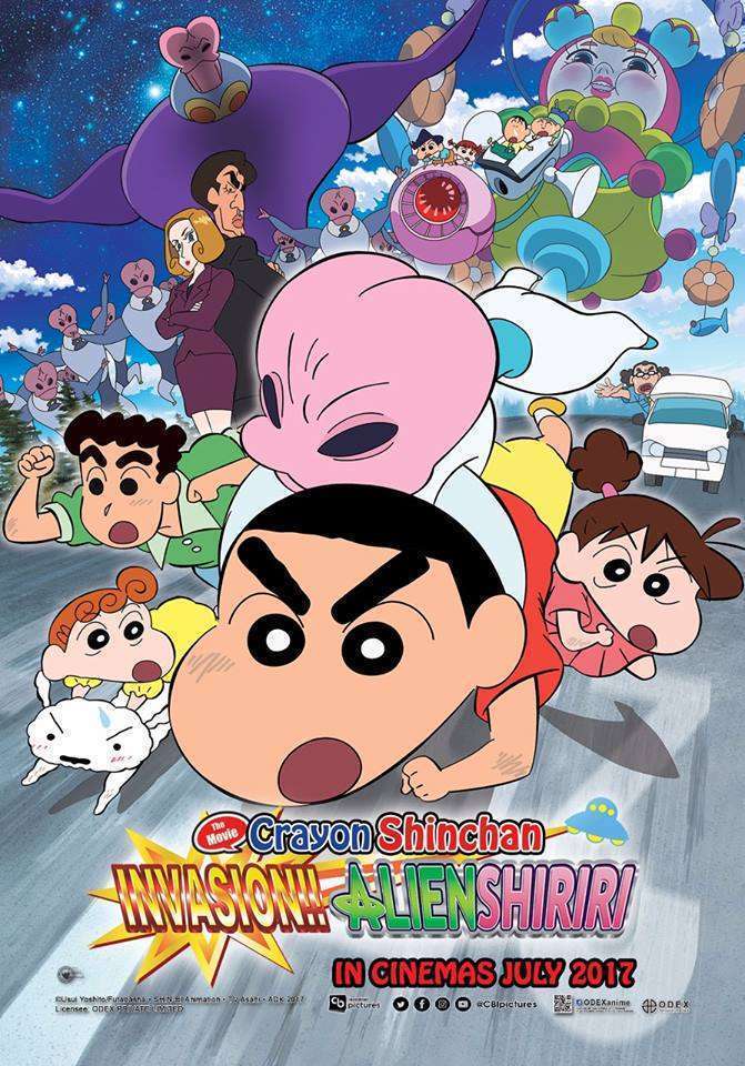 Sebagaimana telah diberitakan sebelumnyaODEX Private Limited telah mengumumkan bahwa pihaknya akan membawa movie terbaru Crayon Shinchan: Invasion!! Alien Shiriri ke sejumlah negara, termasuk Indonesia. Jaringan bioskop CGV Cinemas Indonesia dan Cinemaxx telah mengonfirmasi akan turut memutar movie ini pada 26 Juli 2017. Adapun jaringan bioskop Platinum Cineplex yang beroperasi di Cibinong, Solo, Sidoarjo, Magelang, Bitung, dan Baturaja juga telah mengonfirmasi akan turut memutar film ini pada tanggal yang sama.