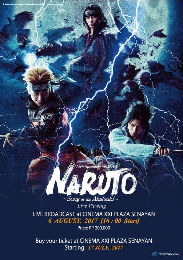 Sebagaimana telah diberitakan sebelumnya, Naruto akan segera hadir dalam bentuk drama panggung. Dengan judul Live Spectacle NARUTO -Song of the Akatsuki-, drama panggung yang akan dipentaskan di Jepang pada 6 Agustus 2017 tersebut juga akan disiarkan dalam bentuk Live Viewing di sejumlah negara termasuk Indonesia. Adapun negara lainnya yang akan turut menggelar Live Viewing ini adalah Australia, Thailand, Taiwan, dan Hong Kong.