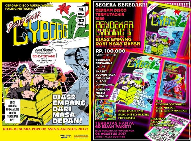 Komik Pendekar Cyborg III akan dibanderol dengan harga 100.000 rupiah, di mana komik tersebut akan dibundel dengan paket yang juga berisi 1 kaset lagu IRAMA SUPER DISCO KECAMATAN Vol. 3 (disertai kupon unduh), bonus komik mistix klenix futuristix, semuanya disajikan dengan FULL TEXXNOLOGCGGHY, FULL MUSIX, dan FULL RUKUN WARGA, serta disajikan disajikan dalam warna yang memickat, terbatas hanya 40 buah paket.