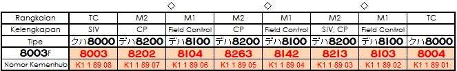Kini, rangkaian KRL seri 8000 eks Tokyu, rangkaian 8003F dipanjangkan dari sebelumnya hanya berformasi 8 kereta. Tidak tanggung-tanggung, dengan menambah 4 unit kereta, kini 8003F berformasi 12 kereta!