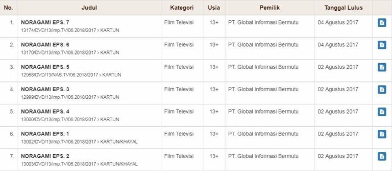 Stasiun televisi Global TV telah mendaftarkan anime Noragami ke Lembaga Sensor Film. Hingga berita ini ditulis tercatat 7 episode dari anime berjumlah 12 episode tersebut telah dinyatakan lulus sensor tertanggal 4 Agustus 2017.