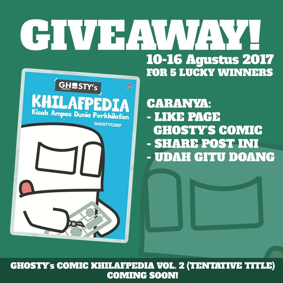 Setelah sukses dengan Khilafpedia, kini GHOSTY’s COMIC, komik strip asam manis dunia perkhilafan siap hadir kembali dalam bentuk komik cetak terbarunya. Belum ada informasi lebih lanjut kapan kiranya komik cetak kedua ini akan diterbitkan. Bahkan masih belum ada judul yang pasti akan komik cetak kedua tersebut. Namun saat ini pihak GHOSTY’s COMIC tengah menggelar sayembara giveaway di akun Facebook mereka.