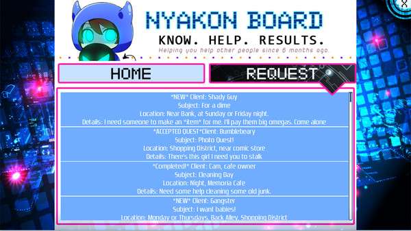 Tugas pemain pada novel visual ini adalah mengungkap siapa pembunuh sebenarnya dan menyelamatkan dunia. Selain itu, pemain juga dapat berjalan keliling kota, berinteraksi dengan karakter lainnya, meningkatkan skill dan moral dan juga dapat menjalankan misi, crafting, dan questing. Tidak hanya itu, tiap karakter di novel visual ini diisi oleh pengisi suara masing-masing, sebagaimana kedua karakter berikut ini: