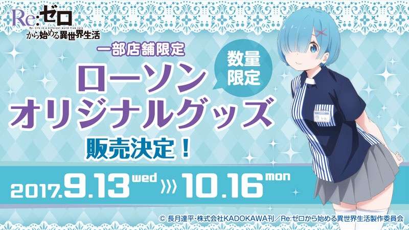 Jaringan minimarket Lawson akan melakukan kolaborasi spesial bersama serial anime Re:Zero kara Hajimeru Isekai Seikatsu. Dalam kerja bareng ini, Lawson menghadirkan karakter waifu sejuta umat para penikmat anime tahun 2016, yaitu Rem.