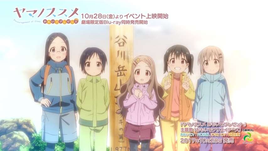 Sebagaimana telah diberitakan sebelumnya, anime Yama no Susume akan berlanjut pada musim ketiganya di tahun 2018 mendatang. Selain itu, anime ini juga akan hadir dalam bentuk OVA berjudul Yama no Susume: Omoide Present (Memories Present) pada musim gugur mendatang.