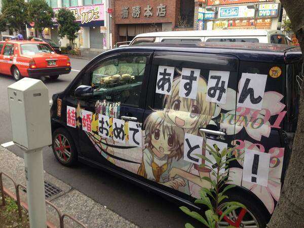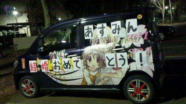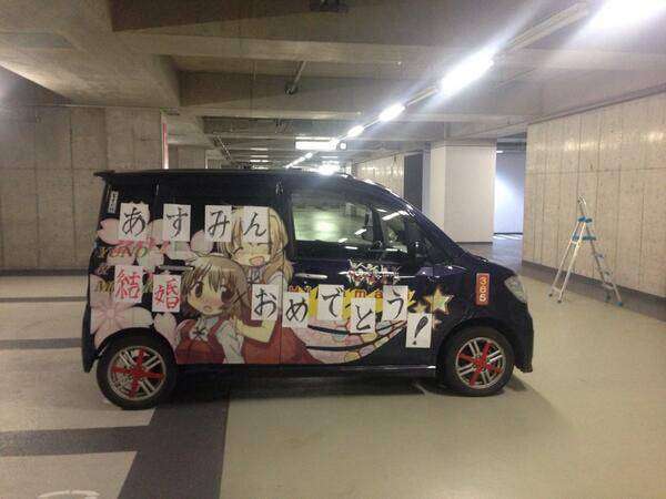 Ekspresi kegembiraan dan ucapan selamat memang dapat dilakukan dalam berbagai macam cara, yang mungkin tidak pernah terpikir sebelumnya. Baru-baru ini, di Jepang, salah satu fans Kana Asumi memberi artis favorit mereka ucapan selamat atas pernikahan dengan menjadikannya stiker di mobilnya (itasha).