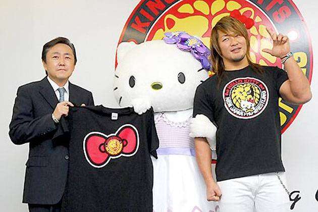 New Japan Pro Wrestling menyatakan akan berkolaborasi dengan Hello Kitty dalam rangka perayaan 40 tahun karakter maskot buatan Sanrio tersebut. Perwujudannya adalah perilisan 2 T-Shirts spesial bertema karakter maskot berbentuk kucing tersebut.