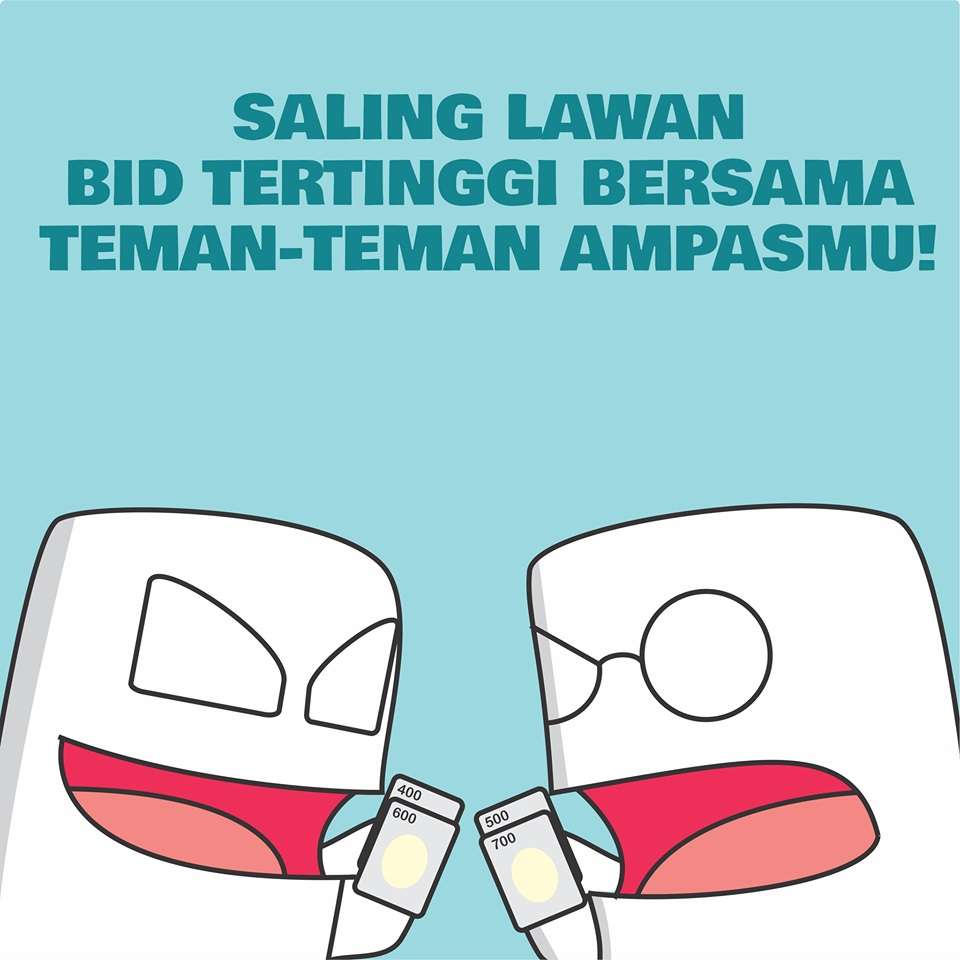 Dalam permainan kartu ini, pemain akan dituntut untuk melakukan perang bid sama pemain-pemain lainnya untuk dapat barang khilafan bernilai tinggi sebanyak-banyaknya dalam pelelangan barang khilafan! Jumlah pemainnya juga bisa sampai 4 orang, makin banyak makin rusuh tentunya. Siapa tau udah jago menangin lelang (atau jago bid n run) bisa langsung jadi master di game ini.