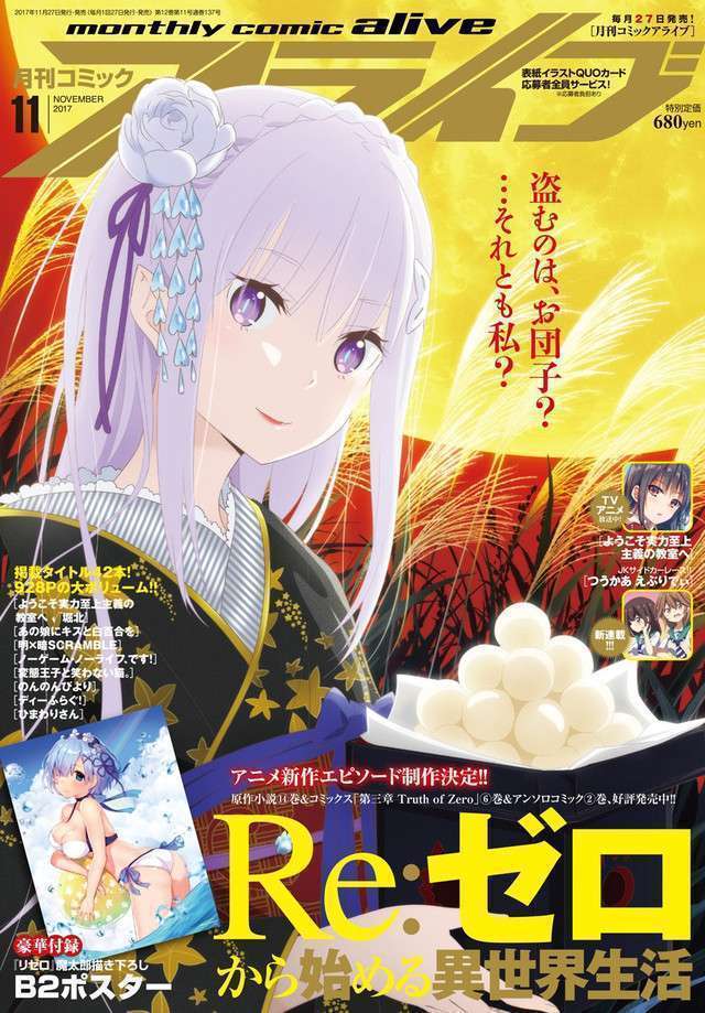 Majalah bulanan Comic Alive yang menampilkan Emilia pada sampul depan untuk edisi November 2017