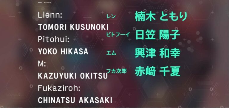 Situs resmi anime ini juga memuat informasi mengenai para pengisi suara yang terlibat di proses produksi anime ini. Berikut ini adalah daftar pengisi suara di anime ini: