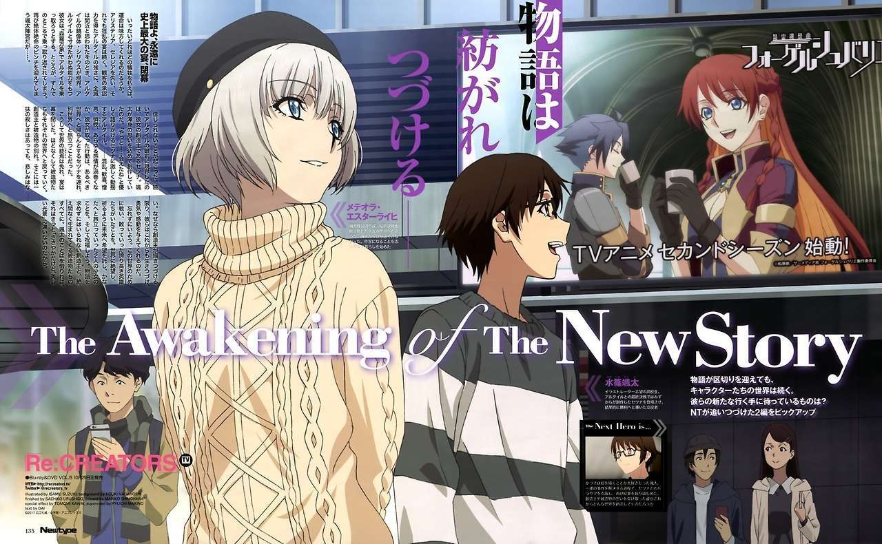 Majalah asal Jepang, Newtype baru-baru ini memberikan sebuah #kodekeras bahwa anime Re:Creators akan berlanjut kembali dengan karakter dan cerita yang baru. Meskipun begitu, masih belum ada informasi lebih lanjut mengenai hal ini. Bahkan dalam situs resmi dari anime tersebut juga masih belum ada informasi sama sekali mengenai kabar ini.