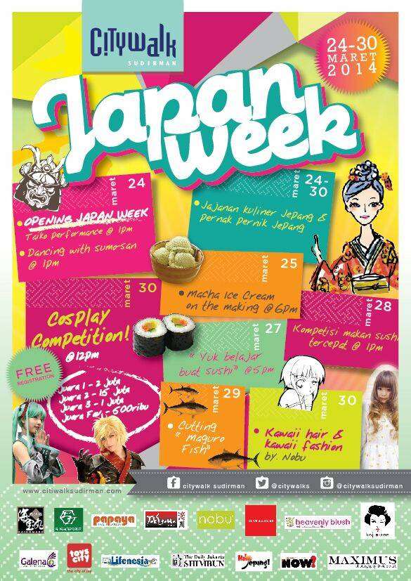 Citywalk Sudirman untuk pertama kalinya menggelar acara komunitas dengan tema “Japanese Art and Culture” yang akan berlangsung pada 24 hingga 30 Maret 2014 dan menampilkan beragam aktivitas baik tradisional maupun modern yang erat kaitannya dengan negara Jepang.