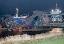 Bukannya ngerem biar berhenti eh malah nambah kecepatan, ya bablas, ancur dah tuh jembatan ditabrak kapalnya