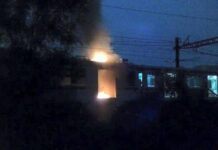 Gangguan pantograf menimbulkan percikan api dan membakar sebagian atap kereta